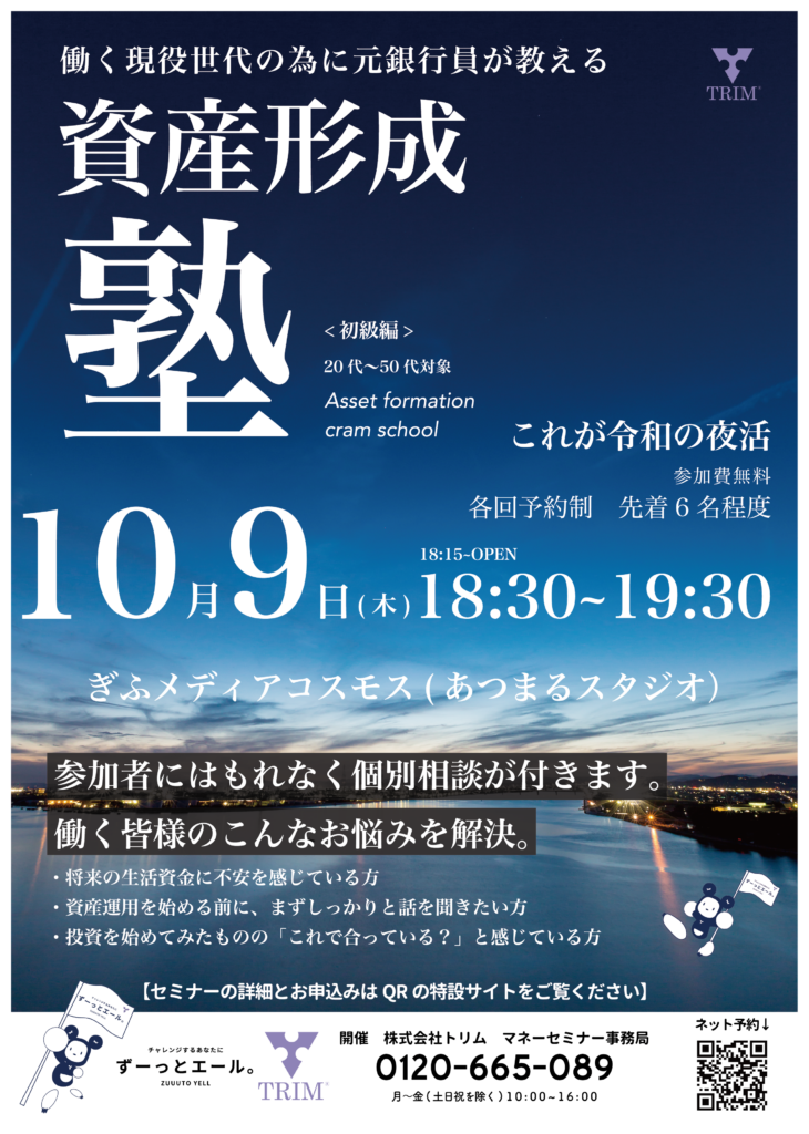 TOP > ブログ一覧 > 取り組み・セミナー情報 > 元銀行員が教える「資産形成塾」10月開催のお知らせ