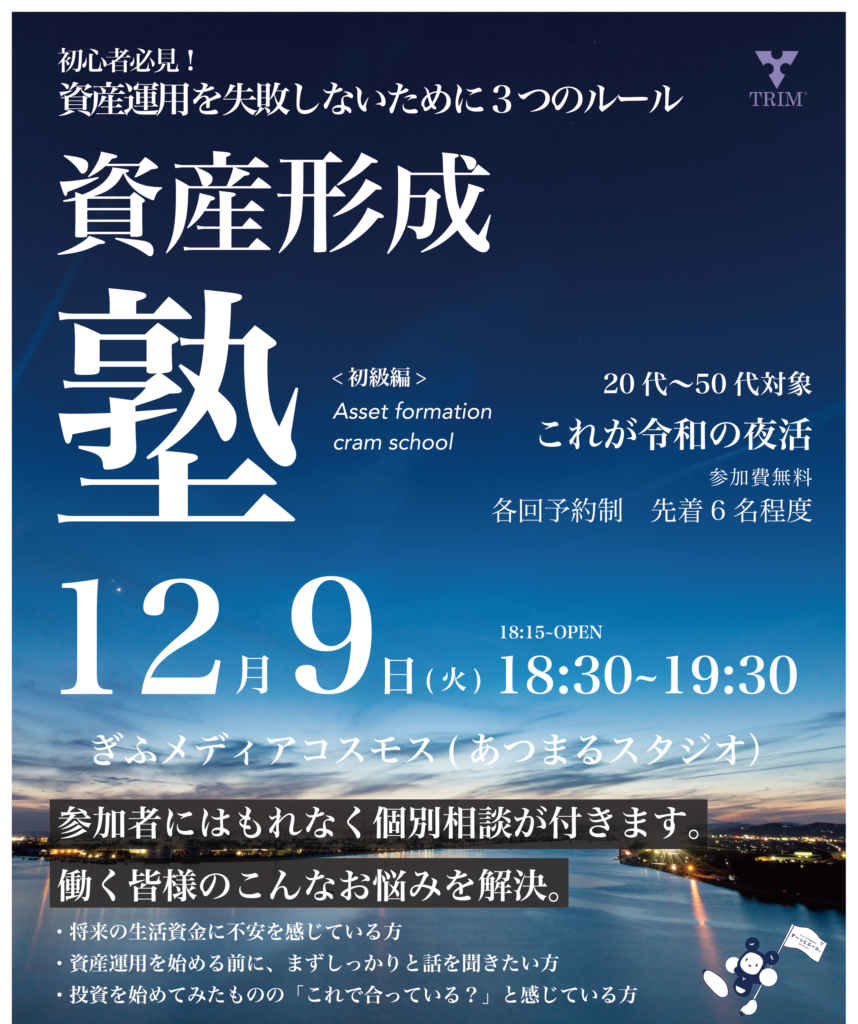 TOP > ブログ一覧 > 取り組み・セミナー情報 > 「資産形成塾」12月開催のお知らせ